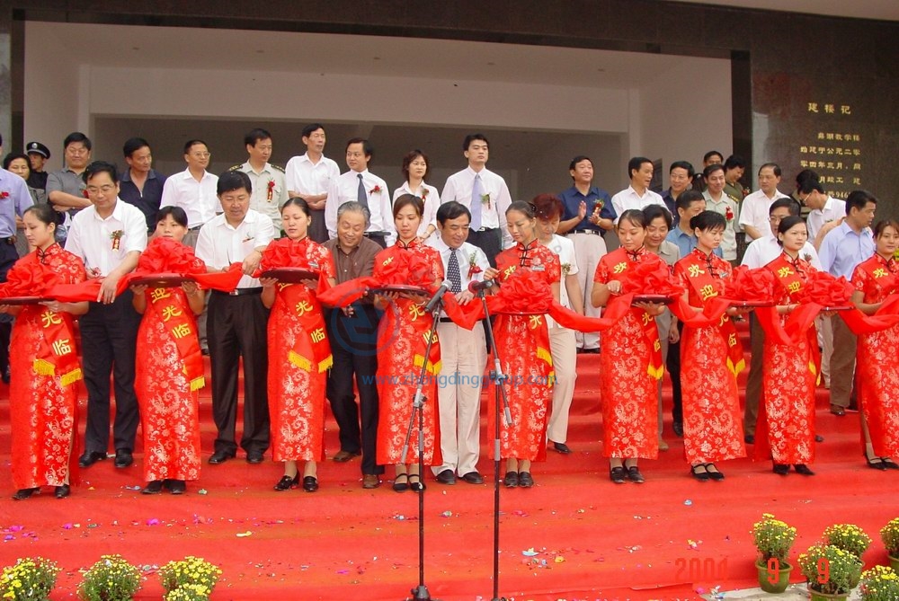 鼎湖小學(xué)落成典禮結束后,夏董事長(cháng)及全家,省、地、市領(lǐng)導即前往寧國中學(xué)高中部,參加鼎湖教學(xué)樓落成典禮。